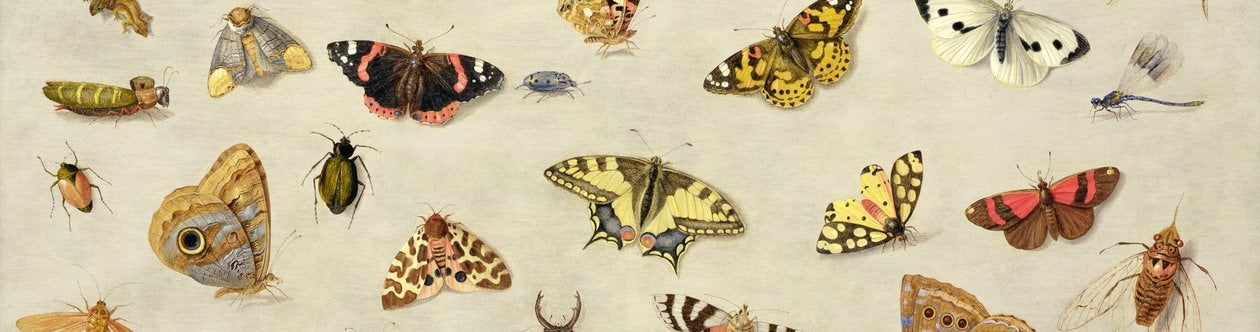 Jan van Kessel (1626–1679) entstammte der angesehenen Künstlerfamilie Brueghel. Sein Onkel, Jan Brueghel der Jüngere, war einer seiner Lehrer. Van Kessels filigrane Tierstudien erfreuten sich in den Niederlanden der 1650er-Jahre großer Beliebtheit, einer Zeit, in der das Interesse an der Natur stark zunahm und Mikroskope begannen, die Vielfalt und Komplexität der Insektenwelt zu enthüllen. So fungieren van Kessels Kompositionen in ihrem historischen Kontext sowohl als Kunstwerke als auch als Beiträge zu wissenschaftlichen Disziplinen wie Botanik, Entomologie, Conchologie und Taxonomie. Doch als Künstler konnte Jan van Kessel auch spielerisch sein: In einem berühmten Gemälde arrangierte er verschiedene Raupen so, dass sie seinen eigenen Namen bildeten.