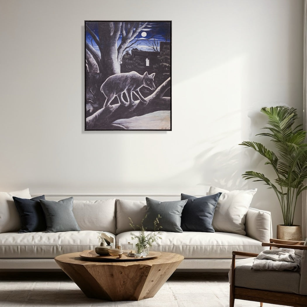 InBär im MondlichtDer georgische Maler Niko Pirosmani, ein Vertreter des Primitivismus, zeigt einen einsamen Bären im Schein eines blassen, leuchtenden Mondes. Die Szene vereint kraftvolle Konturen, vereinfachte Formen und eine eindrucksvolle nächtliche Atmosphäre, die für Pirosmanis ikonischen, symbolistischen Stil charakteristisch ist.