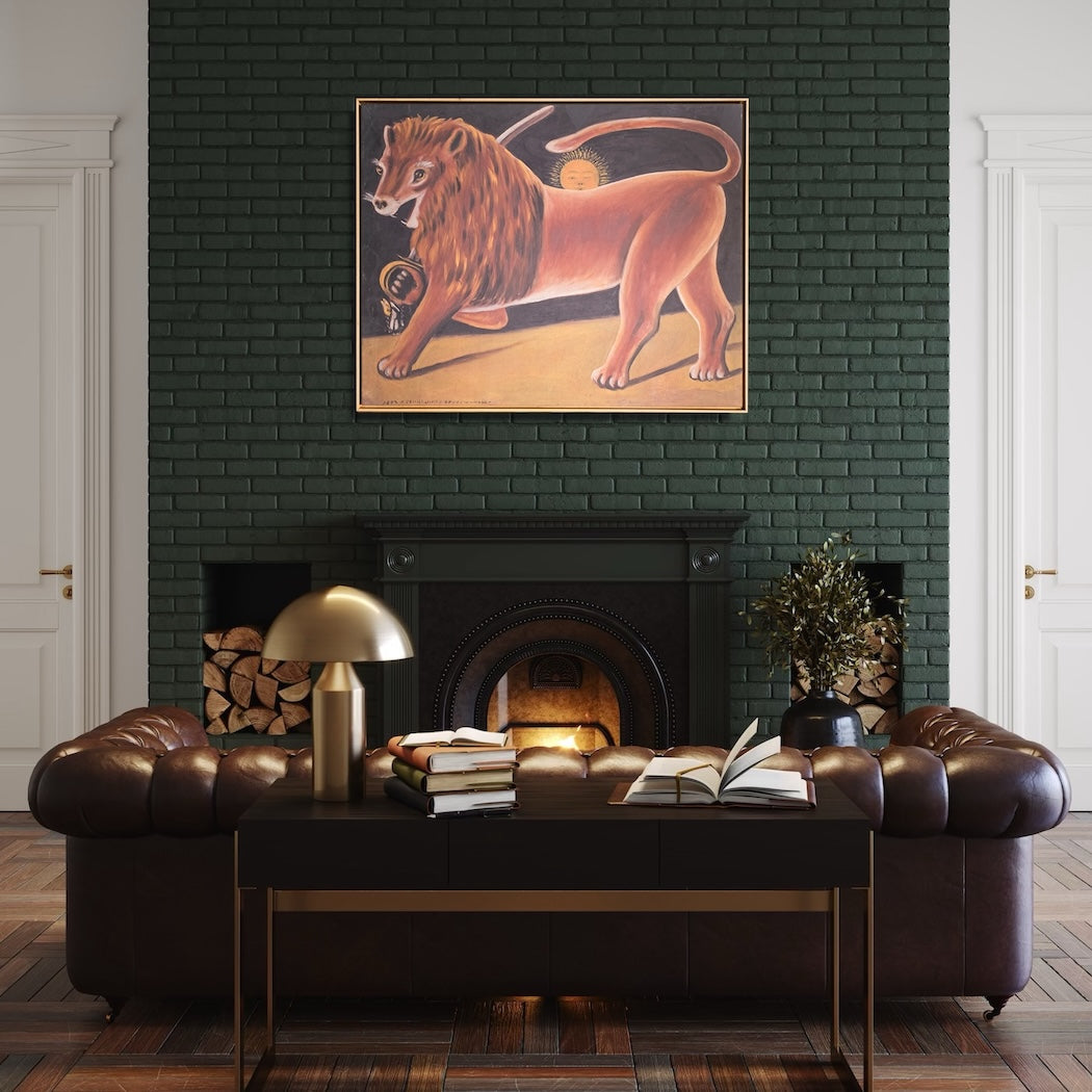 Mit seiner eindrucksvollen Bildsprache und ikonischen SchlichtheitLöwe und SonneVerleiht jedem Interieur Charakter, Kraft und folkloristischen Charme.