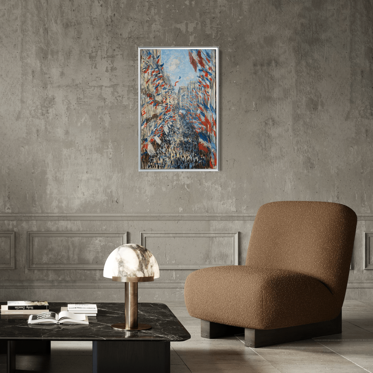 Vibrante, patriotique et emblématique de la maîtrise de la lumière et des scènes urbaines par Monet,La rue Montorgueil à Parisapporte une énergie festive et un charme historique à tout intérieur.